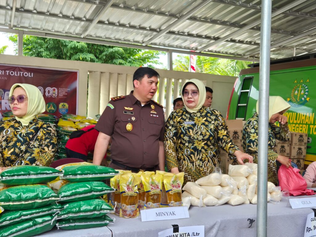 Halaman Kantor Kejaksaan Negeri Tolitoli, Kamis (21/8/2025), dipadati warga yang antusias mengikuti kegiatan Pasar Murah dalam rangka memperingati Hari Lahir Kejaksaan Republik Indonesia ke-80. Acara ini terselenggara atas kerja sama Kejaksaan Negeri Tolitoli dengan Dinas Perdagangan Pemda Tolitoli serta Perum Bulog.